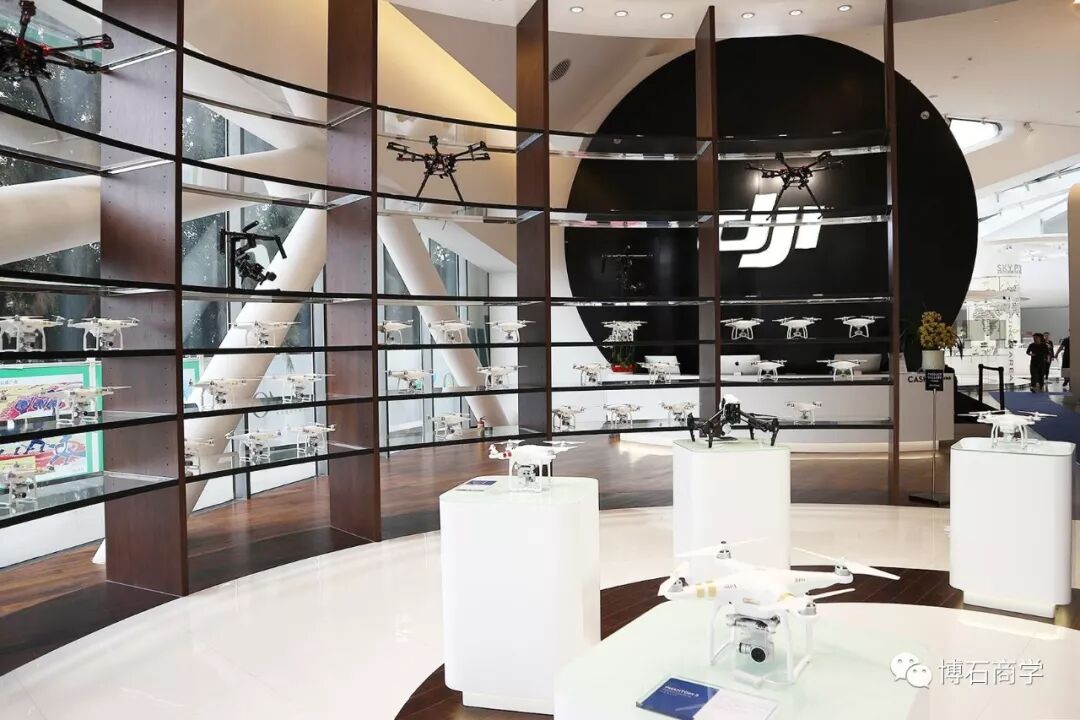 欢乐海岸旗舰店坐落于深圳市南山区欢乐海岸东南角,紧邻OCT狂欢广场,总面积约800平方米。店铺设计前卫、现代,以“体验”这一基础理念为出发点,符合大疆一贯的品牌风格。店内设有产品静态展示区、飞行演示区、“天际漫游家”体验区、交流展示区、飞行影院等功能性区域,满足顾客从了解产品特性到感受航拍影像乐趣的多种交互式需求。